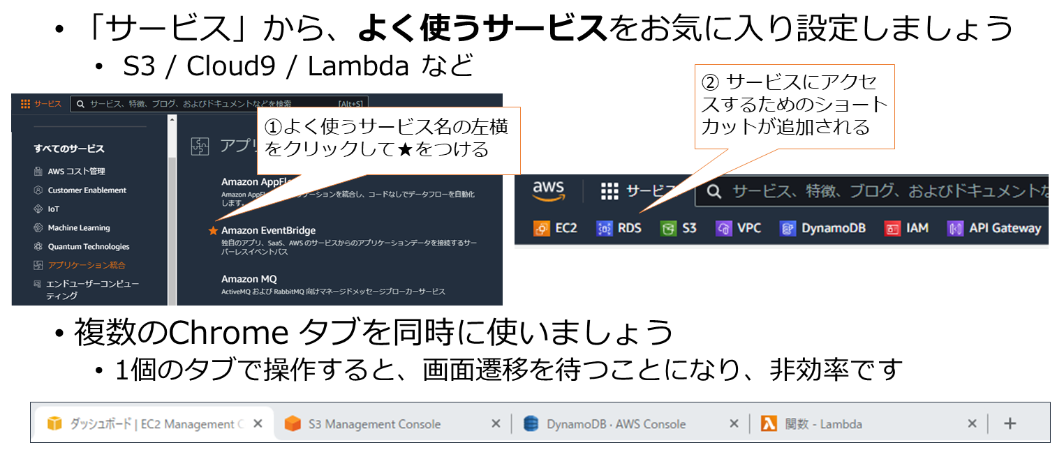 - 効率的に操作するために、マネージメントのお気に入りの機能や、ブラウザのタブを活用しましょう。